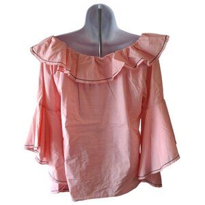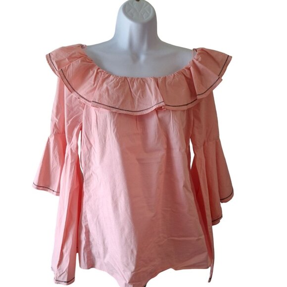 V Cristina Womens Off Shoulder Peplum Top M Pink Ruffle Bell Sleeve Boho Chic