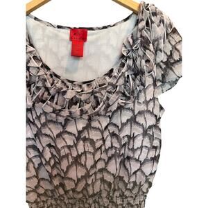 V Cristina Women’s Ruffled Sheet Elastic Waist Short Sleeve Blouse S Black Gray