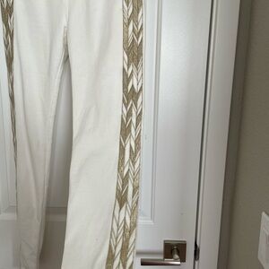 V Cristina Y2K White Skinny Jeans with Gold Embroidery Trim on Sides Size 2