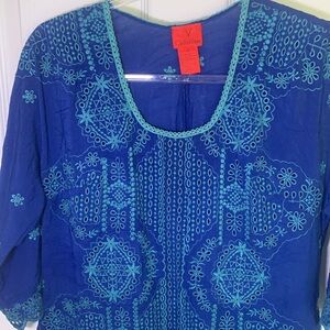 V Cristina embroidered tunic blouse size medium