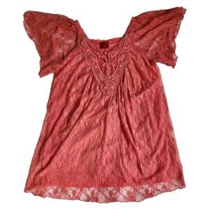 Brand: V Cristina. Occasion: Casual. Any. Size Type: Regular. Size (Women's): M. Material: SHELL: 100% nylon. LINING: 100% polyester. Sleeve Length: Short. Flutter sleeve. Pattern: Floral. Features: Short flutter sleeve. Lace overlay. Crochet detail. Buttons on the chest area. Lined.