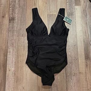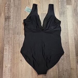V Cut One Piece Black Bathing Suit Women's Size XL