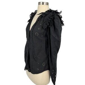 V. De. Vinster Joshua Blouse Black Size S Lace Ruffle V Neck Puff Sleeves