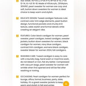 WASHING CARE: Tweed cardigan is easy to care with a laundry bag, hand wash or machine wash, do not bleach or iron, flat dry better. Compressed with vacuum bags, pearl sweater for women will wrinkle when first opened and will be flat after washing or ironing.