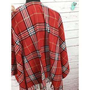 Embrace the cozy charm of this women's poncho, crafted in a vibrant red tartan plaid pattern. Its soft acrylic and polyester blend offers warmth and comfort, making it a versatile addition to any wardrobe. With a classic fringed edge and an open front design, this poncho effortlessly combines style and functionality. Ideal for layering during cooler seasons, it adds a touch of elegance to casual or semi-formal ensembles. • Fringed Hemline • Open Front Design • Acrylic & Polyester Blend Length 31", Across 49" Features: • Fall • Plaid • Made in China Condition: Pre-Owned Like New Wear with jeans shorts skirts sweater hoodies joggers beach vacation summer boho chic hippie bohemian vibe travel street urban outfitters Thank you for looking at my closet if you see anything dont forget to bundle and ill send you an offer over ? I LOVE to shop and have tons to choose from. BOOK MARK ME by hearting an item and come back I list 100 new items a week ?