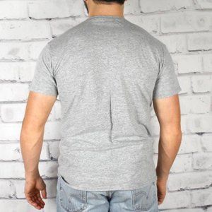 Super dope graphic tee by Fifth Sun features Star Wars Stormtroopers hanging around the office watercooler with caption “Hey, maybe those WERE the droids we were looking for” above. Screen print is on heather gray cotton blend material. Officially Licensed Star Wars LucasFilm Apparel. Some graphic cracking adds character to this sweet piece sure to get a laugh. No other visible flaws or defects.