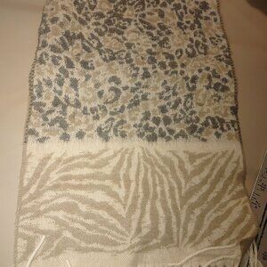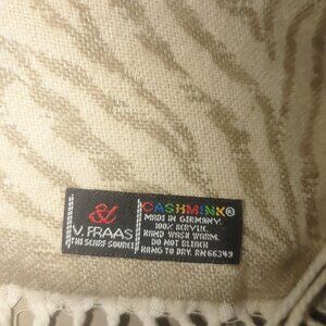 V Fraas Beige Animal Print Scarf Germany Cashmink Fringe 52 by 11 Knit Hat Bonus