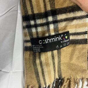V. Fraas Cashmink Nova Check Tartan Plaid Scarf Winter Soft Classic Tan Beige