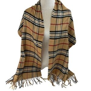 V. Fraas Cold Weather Cashmink Tartan Plaid Scarf, Camel Tan Plaid