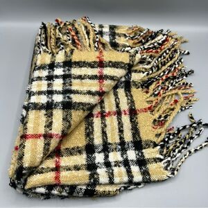 V. Fraas Long Plaid Fringe Scarf Wrap. Good pre-owned condition!