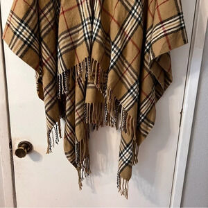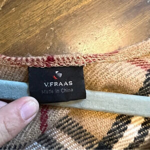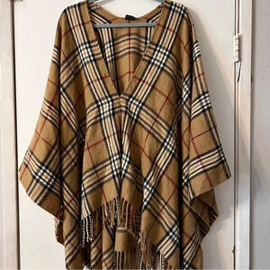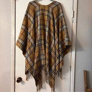 V. Fraas Plaid Check Checkered Poncho Wrap Fringe Cozy Wrap Warm Oversized