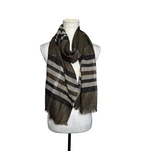 V. Fraas Striped Fringe Scarf Shawl Wrap Made In Germany Brown & Black 80 X 22