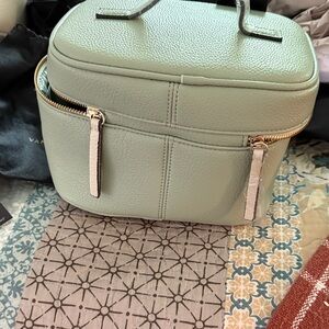 Elevate your travel essentials with this elegant green cosmetic bag from V. Perfect for organizing your beauty products in style.
