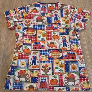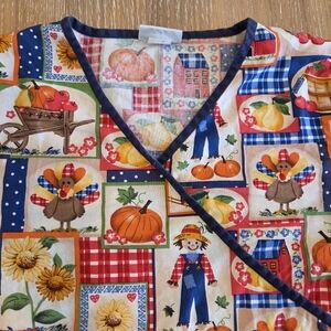 V Life Scrubs Fall Pumpkin Scarecrow V Neck Top Women's Cotton S