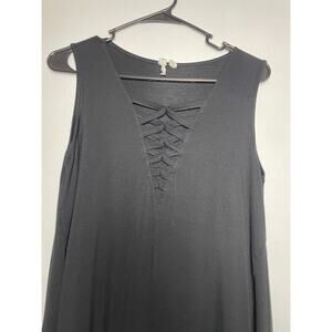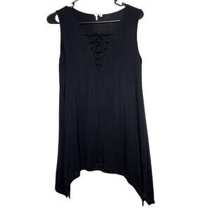 V Neck Blouse Womens Size Small Sleeveless Lace Front Solid Black A-line Hem Top