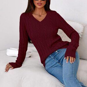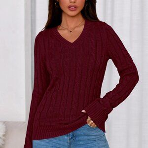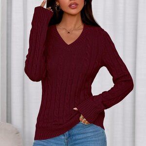 Features: Cable knit sweater women,v neck sweaters for women,long sleeve sweaters for women,fitted sweaters for women trendy,ladies sweaters for fall,cute sweaters for women,fall tops for women 2025,winter sweaters for women,v neck pullover sweater,ribbed detail at neck,cuffs,and hem