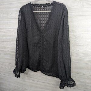 Sheer Swiss Dot and Lace Detailing adds a touch of Femininity to this Lightweight Blouse | Perfect for any Special Occasion | Unbranded Boutique