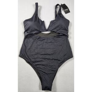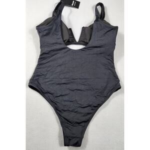 V Neck High Cut Monokini Cutout Backless Womens Size XL Black