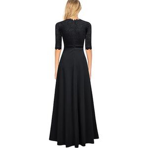 V Neck Lace Vintage Long Dress, SMALL, 8H-158D001