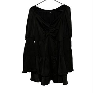 V Neck Puffed Sleeve Black Dress with Cinched Waist Size Medium