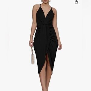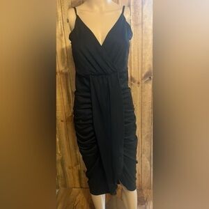 NWOT V Neck Ruched Wrap Slit Hem Sleeveless Spaghetti Strap Midi Bodycon Dress Sz med 2244