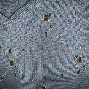 V neck shell with beaded embellishments in a diamond pattern……..pit to pit 16 1/2”