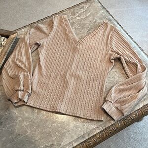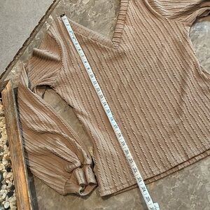 Brown V neck top from Shein. Textured stretchy material. Size large. Worn twice, like new. See pictures.