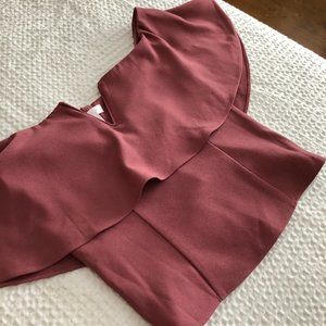 This top has a corset type fitting with the zipper under the arm for easy fitting. My favorite part is the swoop draping off the shoulder. It's a very flattering shirt. Comment for question/styling tips!