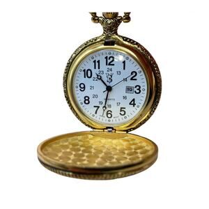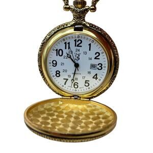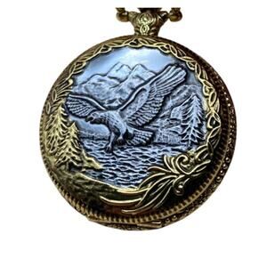 V S Quartz Pocket Watch with Date Time Chain and Belt Clip Beautiful 3d Eagle
