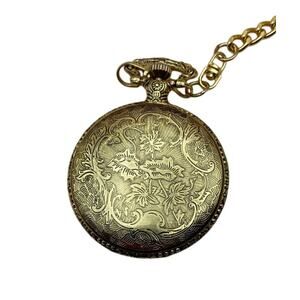 V S Quartz Pocket Watch with Date Time Chain and Belt Clip Beautiful 3d Eagle on Back-In like new condition-WORKING-Please see all photos.