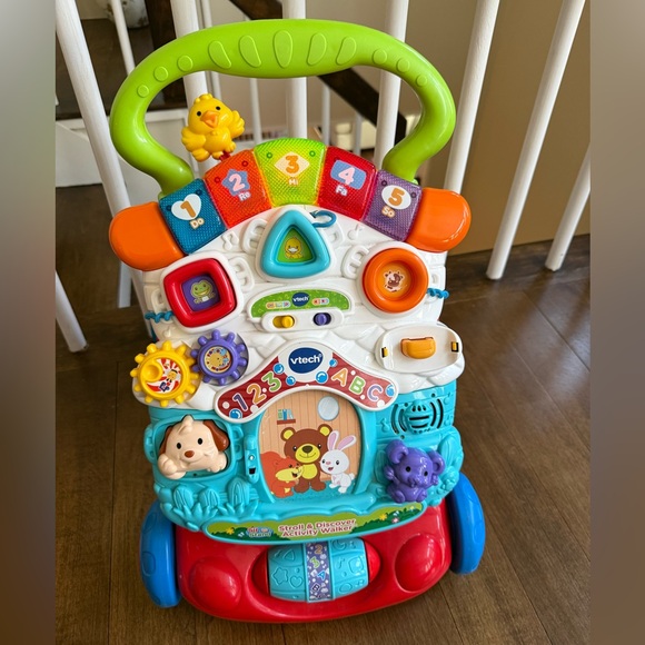 V tech walker push toy. Missing pieces (door & fake phone) but works