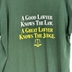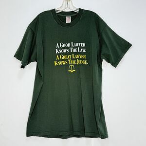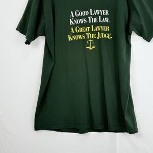 Vintage 90s Mens Size XL Good Lawyer Knows Law Great Knows Judge T Shirt Green