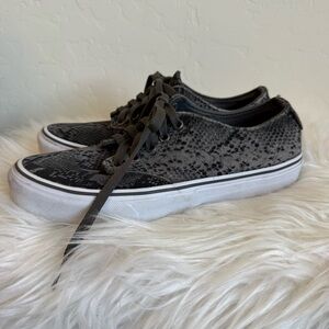 Vans Authentic Suede Gray Snakeskin Animal Print Low Top Sneakers Size 8.5