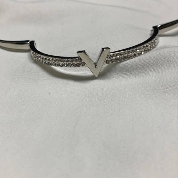 V silver bangle with closure. New. Size 7 inches. Has crystal stones