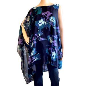 V by Vanessa Williams Asymmetrical Womens Flutter Blouse Sz 2X Floral