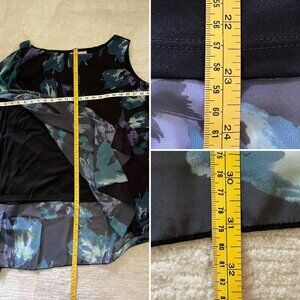 This V by Vanessa Williams asymmetrical flutter blouse in size 2X is perfect for women who love to express their unique style with a floral touch. Its black, green and purple color palette is versatile and stylish.