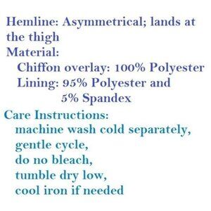 • Material: Top layer - 100% Polyester; Underlayer - 95% Polyester, 5% Spandex