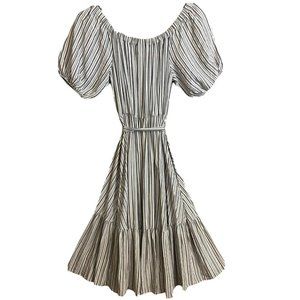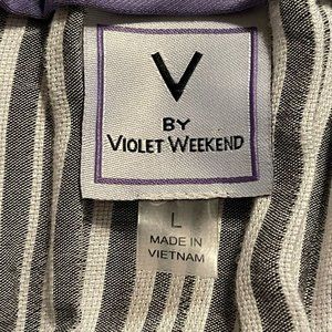 V by Violet Weekend Women Dress Large Belted Gray White Tiered Lagenlook Prairie