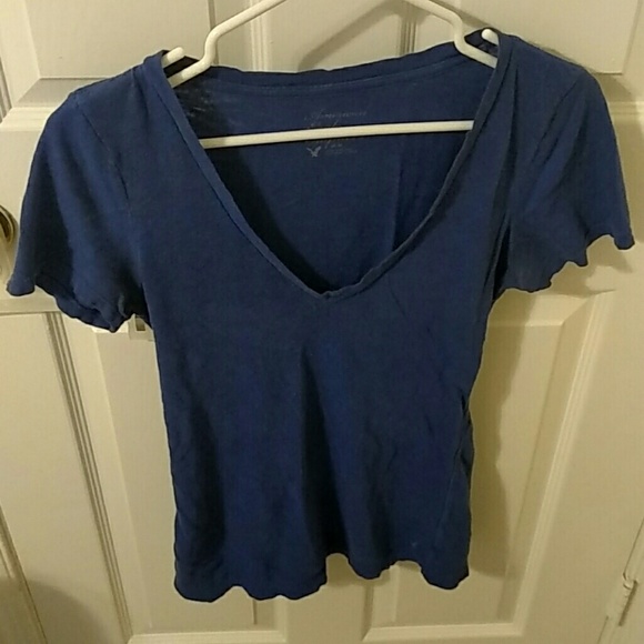Blue v neck, worn