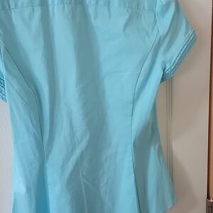 Light blue v neck button down shirt. has braided cord embellishment