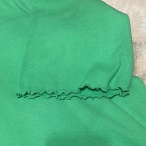 Both have a mesh around the collar and ruffle edge on the hem and cuffs