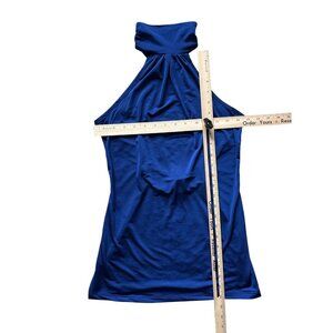 V.1 Couture Shirt Womens Small Blue Halter Mock Neck Open Back Blouse Top