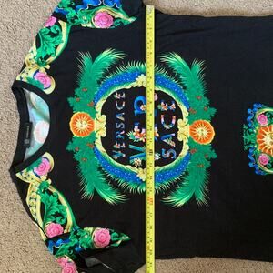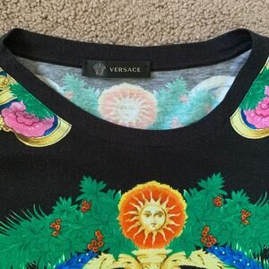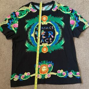 V1012 Versace men's black cotton T shirt with prints size L in great condition as shown in pictures.