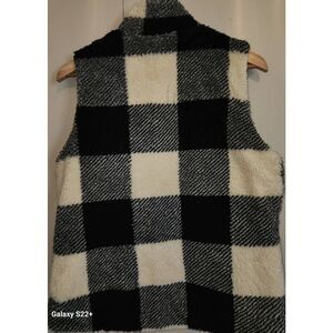 NWOT-Thread & Supply Black & White Buffalo Check Reversable Sherpa Vest Size Medium