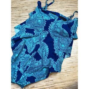 V-4 Jantzen ruffle front One-Piece Plunge Swimsuit BLUE PAISLEY sz 10 nwot