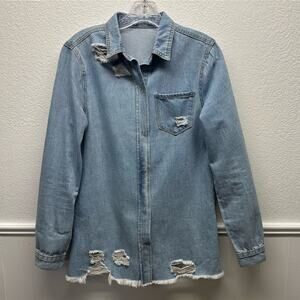 V580 Soft & Distressed DENIM Shirt, Jacket or Dress US Women’s Small Long Sleeve