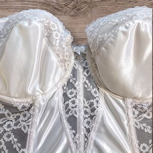 VA BIEN Low-Back Underwire White Lace Corset - Style 128-6008 Size 40D & 42DD