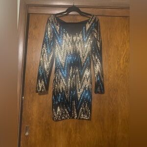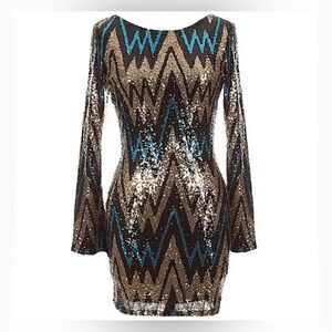 VA VA VOOM #39 Long-Sleeve Gold Sequin Bodycon Chevron Dress - Black, Blue, Gold