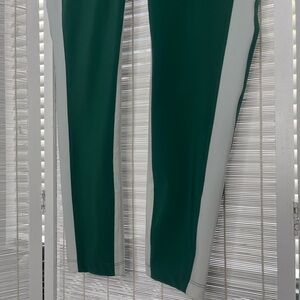 ✨ VAARA rain forest flo tuxedo leggings. Green and white color block. The seam is pulling at the waistband, refer to photo. Good used condition!