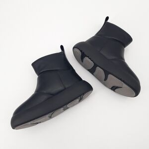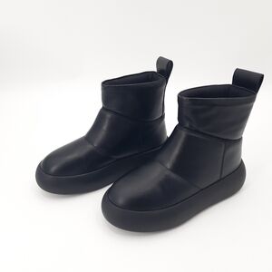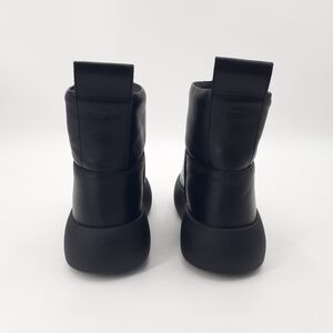 Make a statement this winter with the Vagabond Aylin boots, a sleek, low-cut snow boot crafted from smooth genuine cow leather. Designed with a modern, chunky silhouette, these boots feature a rounded toe, a padded upper, and a convenient pull-on shaft with heel-loop tabs. The sturdy, rounded 54mm outsoles provide comfort, height, and durability for cold-weather wear.